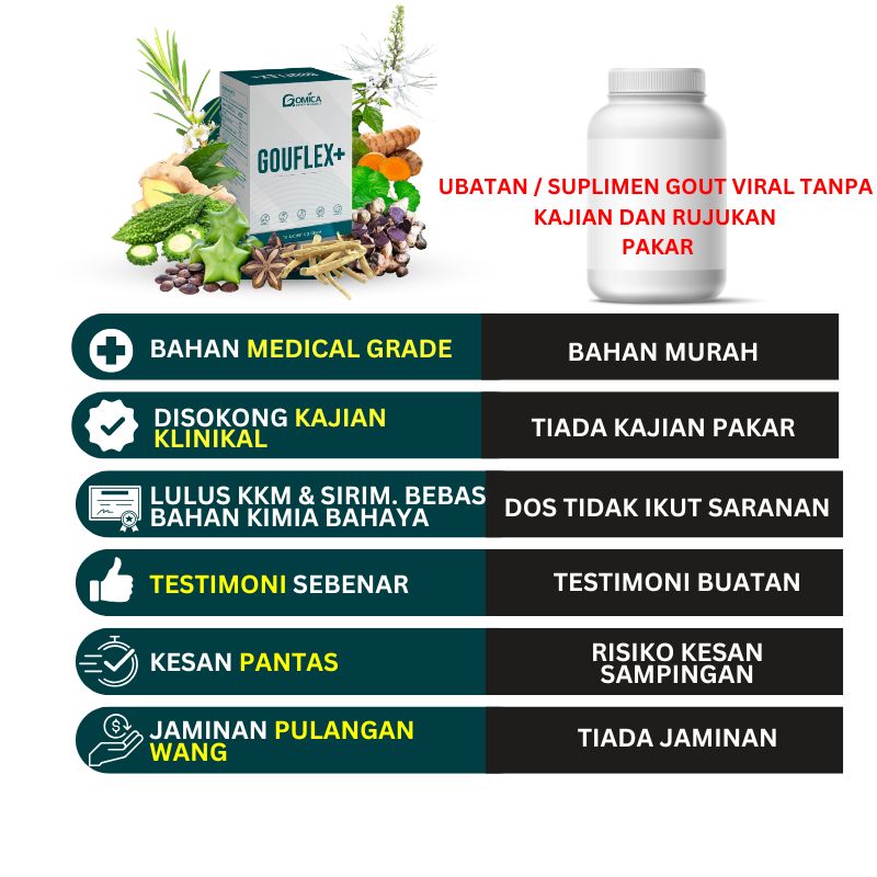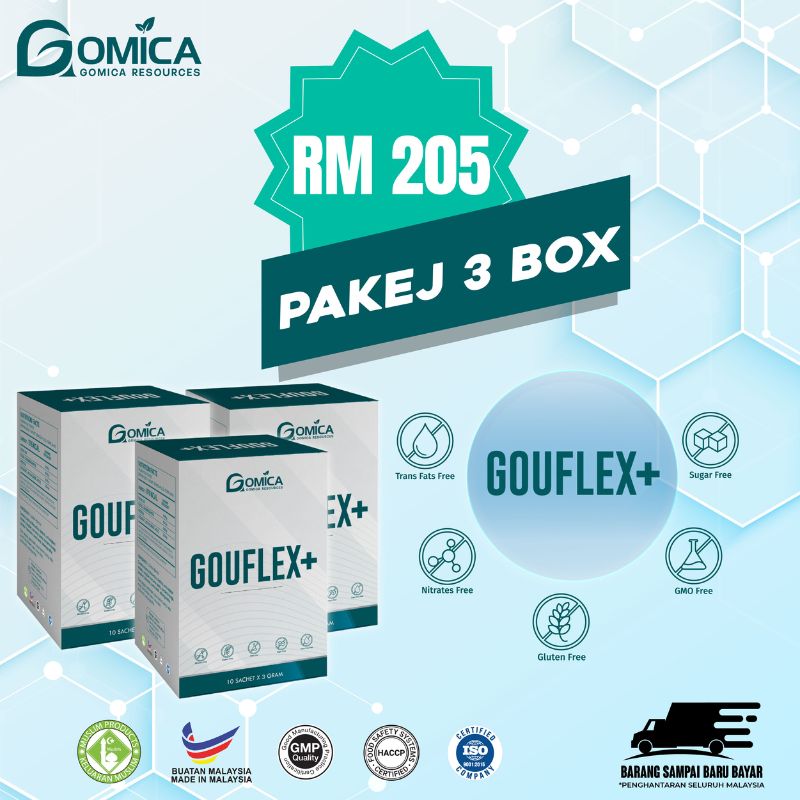 GOUFLEX+ diformulasi di Malaysia, diproses di fasiliti bertaraf GMP & HACCP, dan diformulasi mengikut keperluan kelulusan KKM.