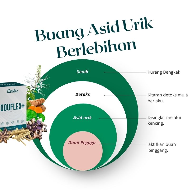 Sebelum ni, setiap kali bangun pagi mesti sendi ibu jari kaki sakit mencucuk. Lepas amal GOUFLEX+ 3 hari berturut-turut, bengkak surut dan boleh berjalan macam biasa. Rasa lega sangat!